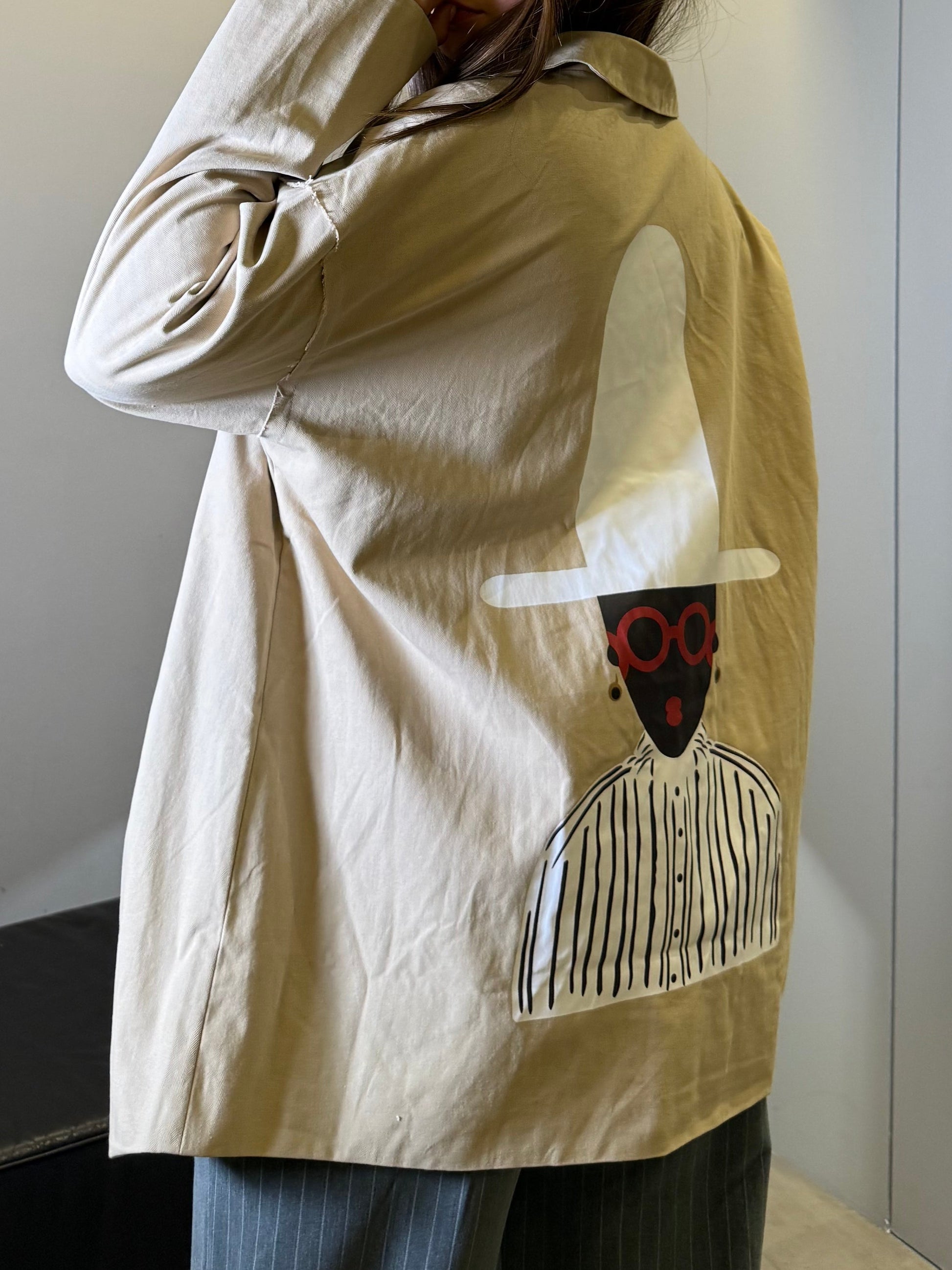 Il capo si distingue per la maxi stampa grafica sul retro: un’illustrazione dal carattere artistico e minimal, con dettagli a contrasto che aggiungono personalità e rendono il blazer un vero statement piece.