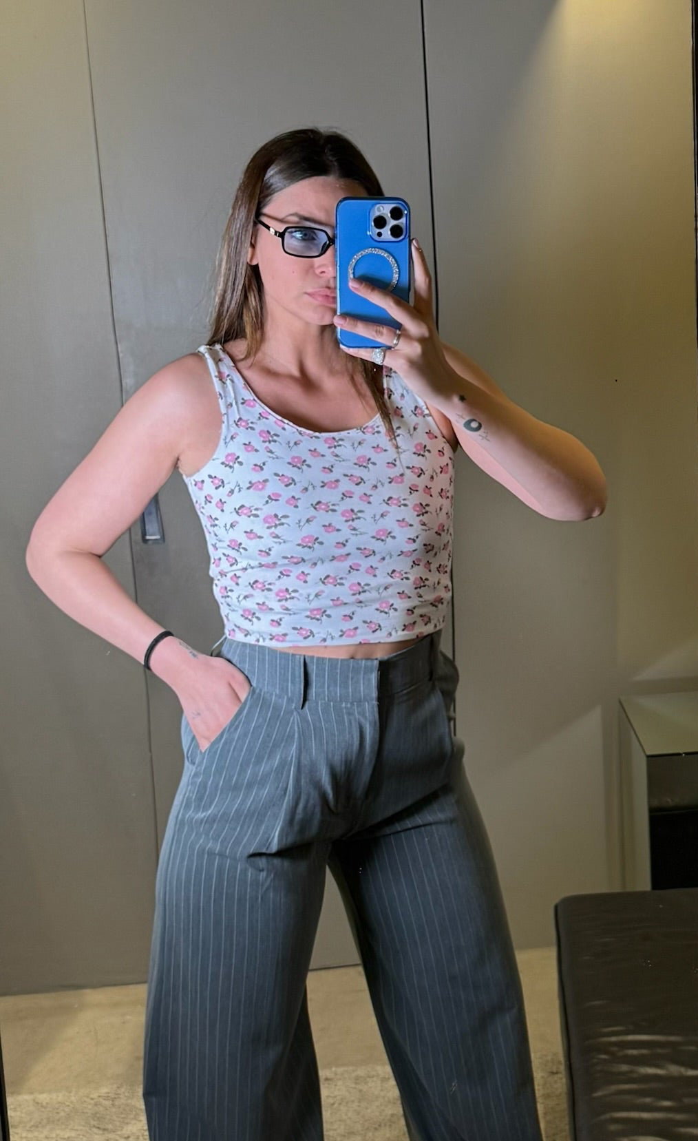 Top crop in cotone elasticizzato dalla vestibilità aderente che valorizza la silhouette. Presenta scollo rotondo e spalline larghe per un comfort ottimale e una linea pulita. La stampa floreale all-over nei toni delicati dona un tocco fresco e femminile, perfetto per la stagione primaverile ed estiva. Ideale da abbinare a pantaloni a vita alta o gonne per creare look casual, romantici o dal mood contemporaneo.